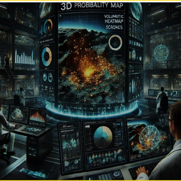 3D AI-generated maps highlight the most promising drilling locations with probability scores.