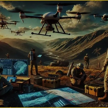 Drones & satellites capture high- resolution geophysical data while geologists collect soil and rock samples